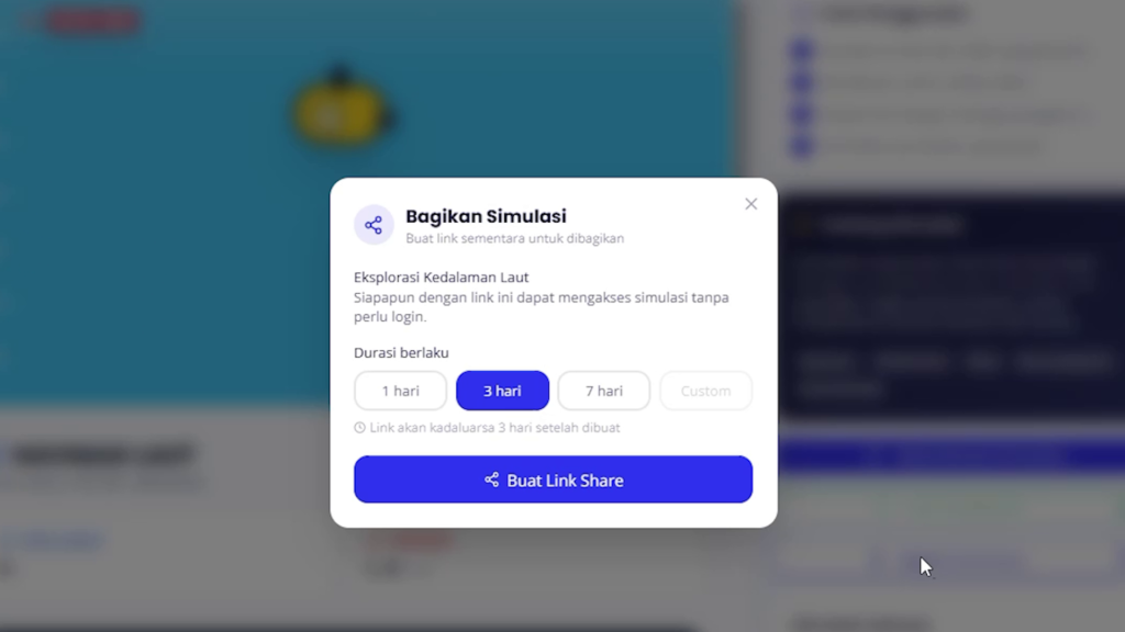 Fitur ini sangat berguna untuk membagikan materi simulasi kepada siswa atau kerabat tanpa mewajibkan mereka untuk login atau memiliki akun. Langkah-langkah: Tips Tambahan: